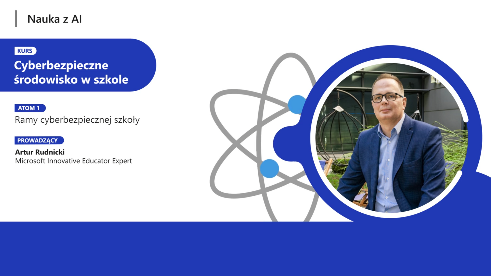 Na nagraniu prowadzący wyjaśnia, czym jest cyberbezpieczne środowisko edukacyjne, omawia kluczowe obszary bezpieczeństwa w szkole oraz prezentuje ramy prawne i procedury reagowania na incydenty.