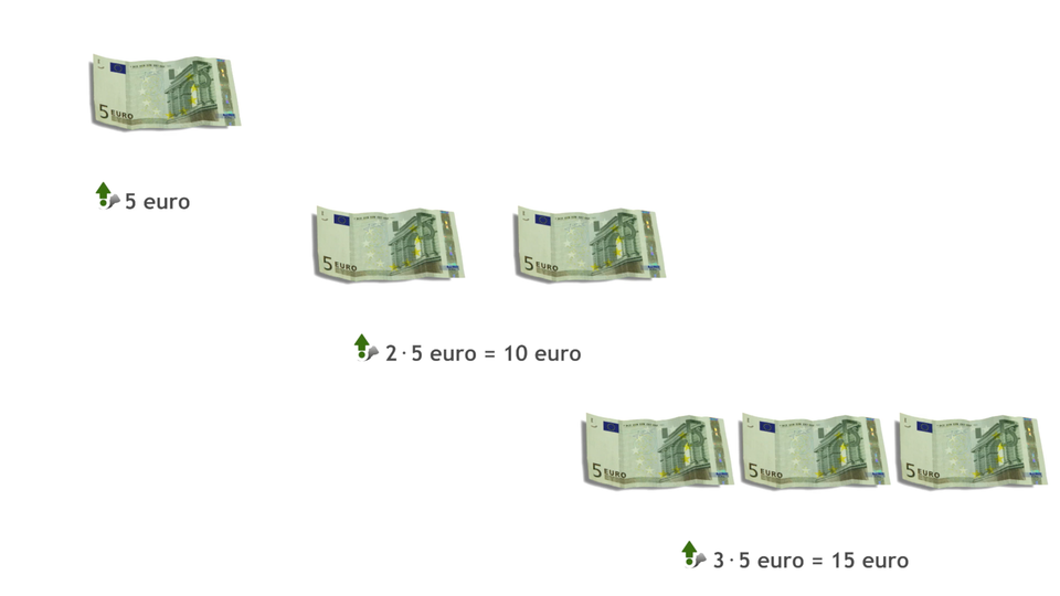Animacja przedstawia wielokrotności liczb naturalnych na przykładzie obliczania wielokrotności pewnej kwoty pieniędzy.