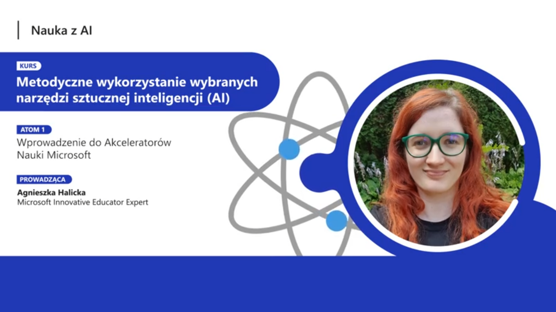 Na nagraniu prowadząca przedstawia ideę Akceleratorów Nauki oraz ich rolę w rozwijaniu kompetencji uczniów z wykorzystaniem sztucznej inteligencji.