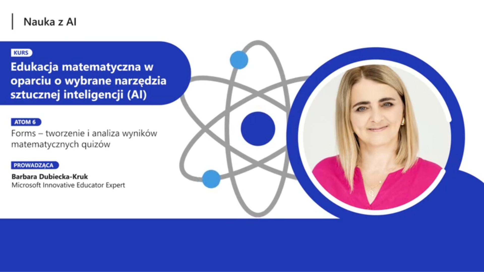 Nagranie prezentuje, jak nauczyciel może tworzyć quizy matematyczne, analizować wyniki uczniów i udzielać informacji zwrotnej z wykorzystaniem Microsoft Forms.