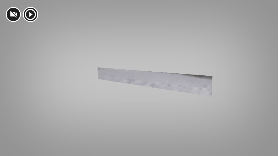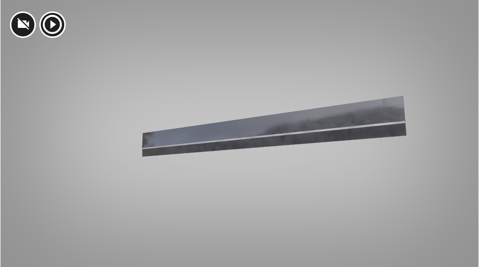 Wizualizacja 3D prezentuje obracający się model 3D listwy raklowej. Widoczny jest prostokątny pas w kolorze jasnosrebrnym.