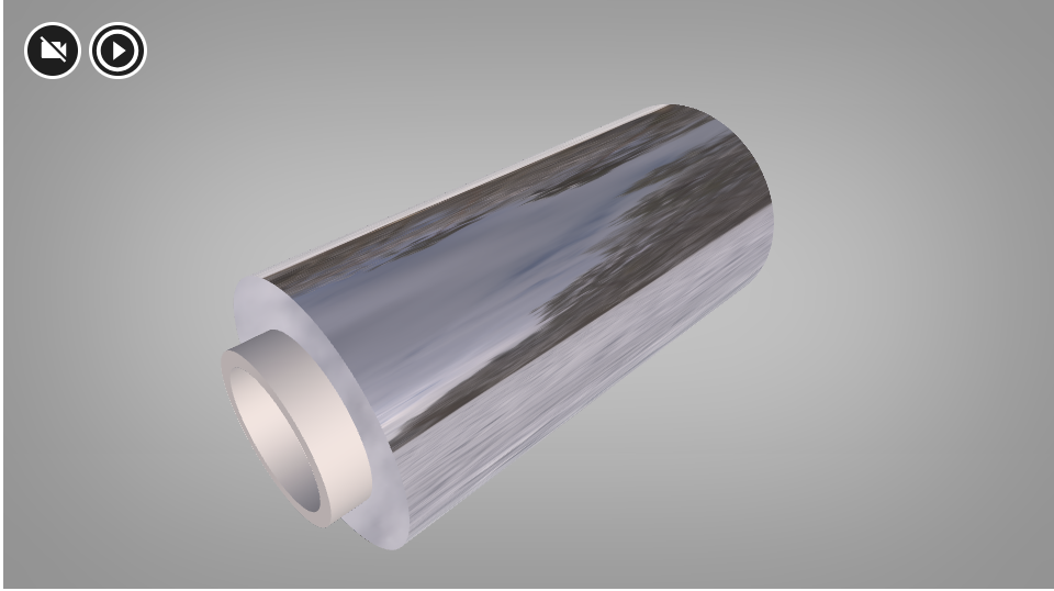 Wizualizacja 3D prezentuje obracający się model folii PCV. Widoczna jest lekko rozwinięta rola folii w kolorze srebrnym, błyszczącym.