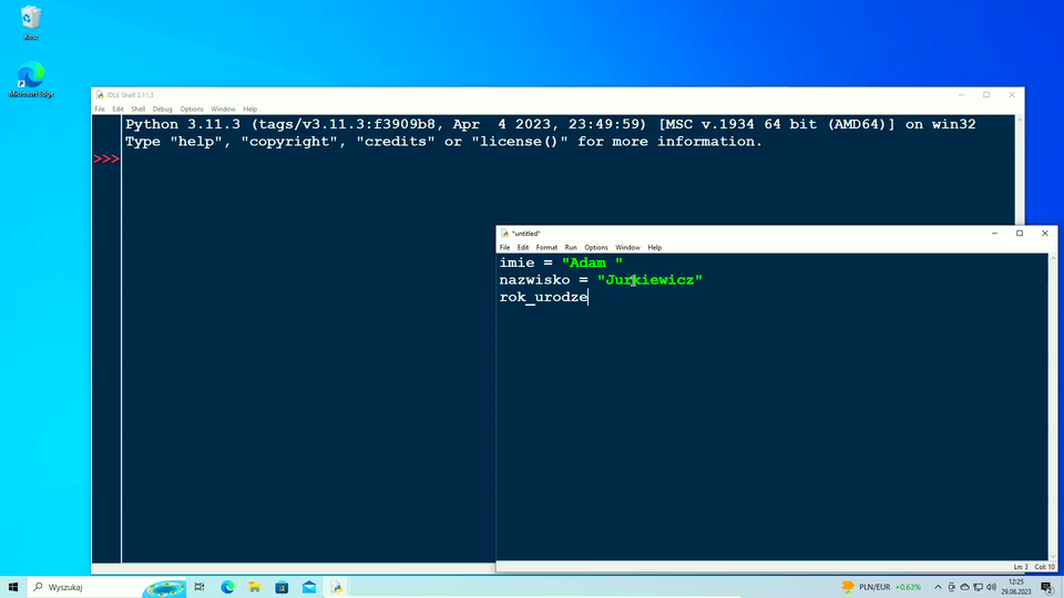 Przykład nadania zmiennej wartości wprowadzonej z klawiatury – wynik działania funkcji input():