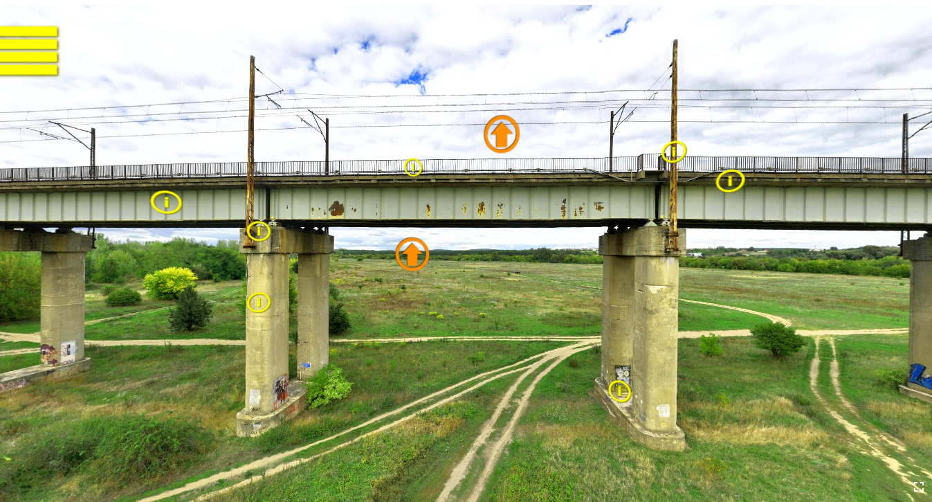 Wycieczka wirtualna przedstawia wiadukt masywny w Łodzi znajdujący się na linii kolejowej numer 16 w Km 3,597.