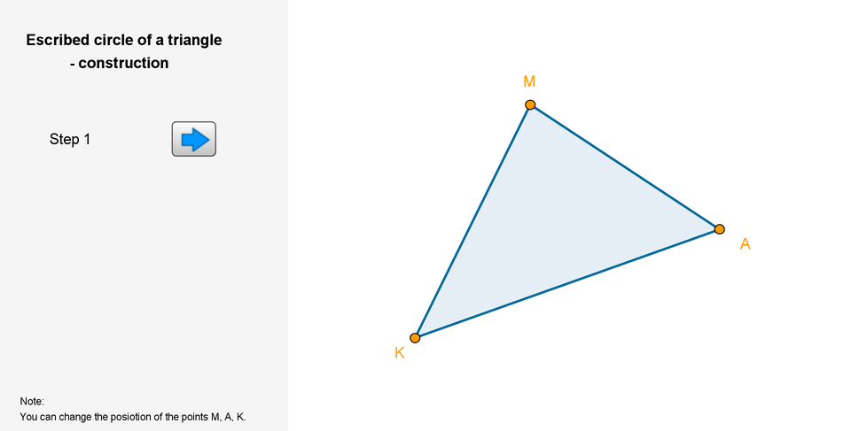 Open the applet and observe step by stepstep by stepstep by step the construction of a circlecirclecircle circumscribed about a triangletriangletriangle.