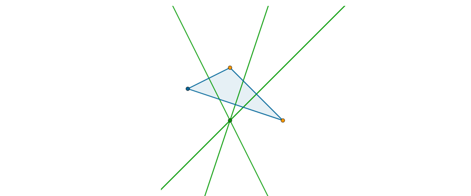 Geogebra aplet - konstrukcja symetralnych boków w trójkącie. Galeria z opisami alternatywnymi poniżej.