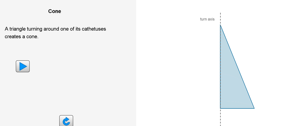 conecone - otrzymujemy obracając trójkąt prostokątny wokół prostej zawierającej jedną z przyprostokątnych