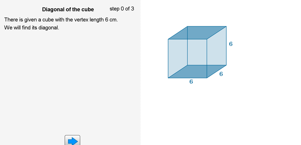 Wersja alternatywna ćwiczenia: The diagonal of a cube is equal to . The volume of this cube is: Możliwe odpowiedzi: 1. , 2. , 3. , 4.
