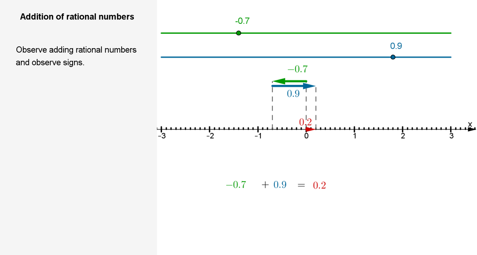 If we add two rational numbersrational numbersrational numbers of different signs, then the sign of the sum is the same as the sign of the number located further from 0 on the number line.