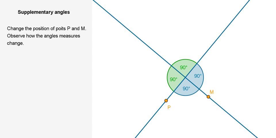 The angle is a part of a planeplaneplane cut out by two half‑lines with a common beginning including the half‑lines. If we extend the arms of the angleangleangle to the straight lines we will get pairs of angles having many properties. Today the students are going to discover such properties.