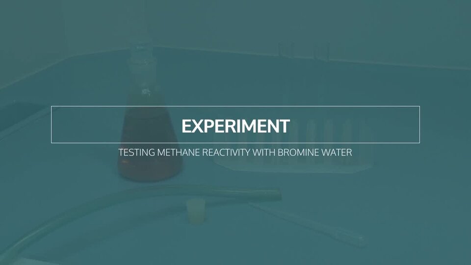 Formulate a research question and hypothesis before watching a video “Testing methane reactivity with bromine water”. After the screening, write down your observations and conclusions.