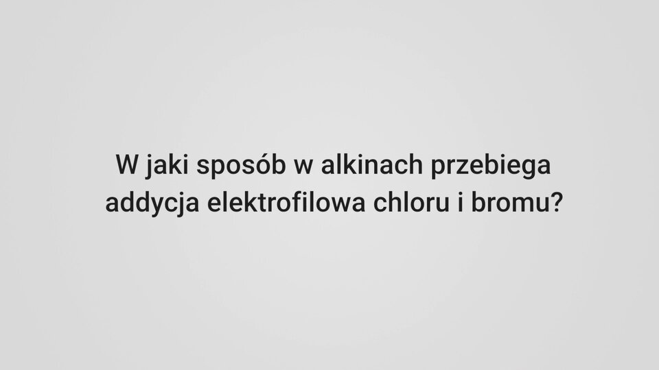 Film nawiązujący do treści materiału - przedstawia, w jaki sposób w alkinach przebiega addycja elektrofilowa chloru i bromu.