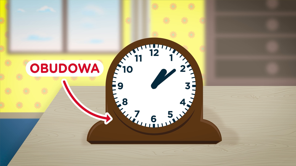 Sprawdź na dostępnym zegarze godzinę, którą wskazuje.