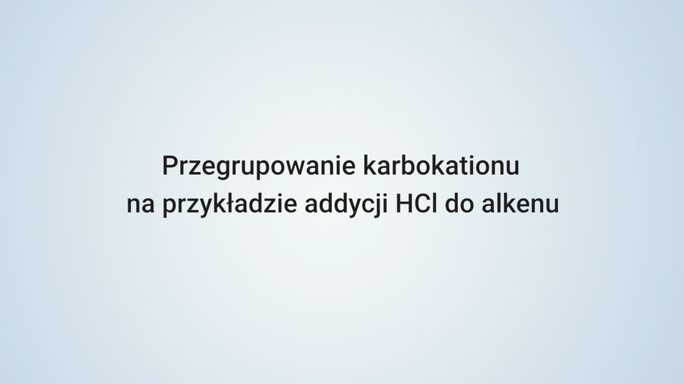 Karbokationem nazywany jest kation, w którym ładunek dodatni jest zlokalizowany na atomie węgla. Czy wiesz, jak przebiega przegrupowanie karbokationu na przykładzie addycji chlorowodoru do alkenu? Zapoznaj się z poniższą animacją i wykonaj ćwiczenia.