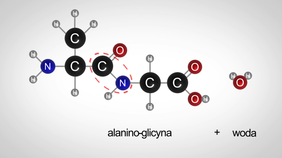 Czy wiesz, z ilu aminokwasów składają się tripeptydy oraz tetrapeptydy? Gdzie znajdują się grupy funkcyjne aminokwasów tworzące wiązania peptydowe? Zapoznaj się z poniższą animacją na temat powstawania wiązania peptydowego, a następnie rozwiąż ćwiczenia.