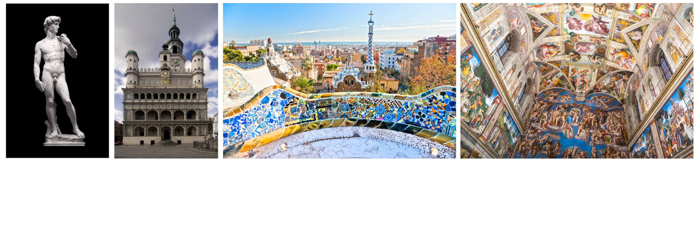 Do dzieł dopasuj ich antyczne inspiracje. Dzieło 1. Freski Michała Anioła w Kaplicy Sykstyńskiej, inspiracje: A. Kontrapost – grecki kanon rzeźbiarski, B. Mozaika grecka i rzymska, C. Starożytne malarstwo ścienne, D. Architektoniczne kanony Grecji i Rzymu. Dzieło 2. Antonio Gaudi, Mozaikowa ławka w parku Güell, inspiracje: A. Kontrapost – grecki kanon rzeźbiarski, B. Mozaika grecka i rzymska, C. Starożytne malarstwo ścienne, D. Architektoniczne kanony Grecji i Rzymu. Dzieło 3. Giovanni Battista di Quadro „Ratusz w Poznaniu”, inspiracje: A. Kontrapost – grecki kanon rzeźbiarski, B. Mozaika grecka i rzymska, C. Starożytne malarstwo ścienne, D. Architektoniczne kanony Grecji i Rzymu. Dzieło 4. Michał Anioł "Dawid", inspiracje: A. Kontrapost – grecki kanon rzeźbiarski, B. Mozaika grecka i rzymska, C. Starożytne malarstwo ścienne, D. Architektoniczne kanony Grecji i Rzymu.