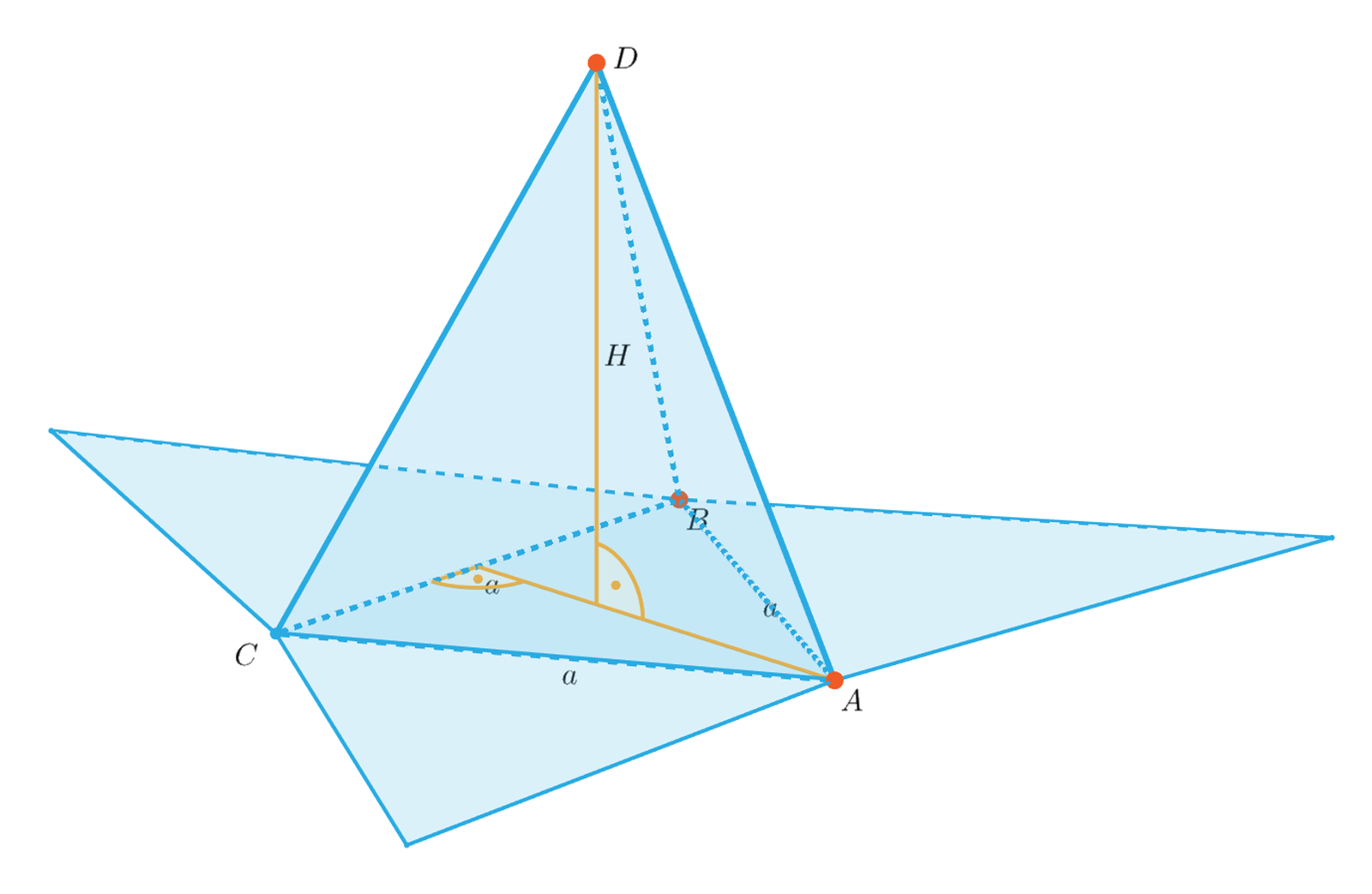 Niech krawędź podstawy ostrosłupa prawidłowego trójkątnego ma długość , zaś jego wysokość . Następnie krawędź podstawy zwiększyła się dwukrotnie, ale wysokość pozostała bez zmian. Oblicz pole powierzchni ostrosłupa prawidłowego trójkątnego po zmianie oraz określ o ile razy się ono zwiększyło.