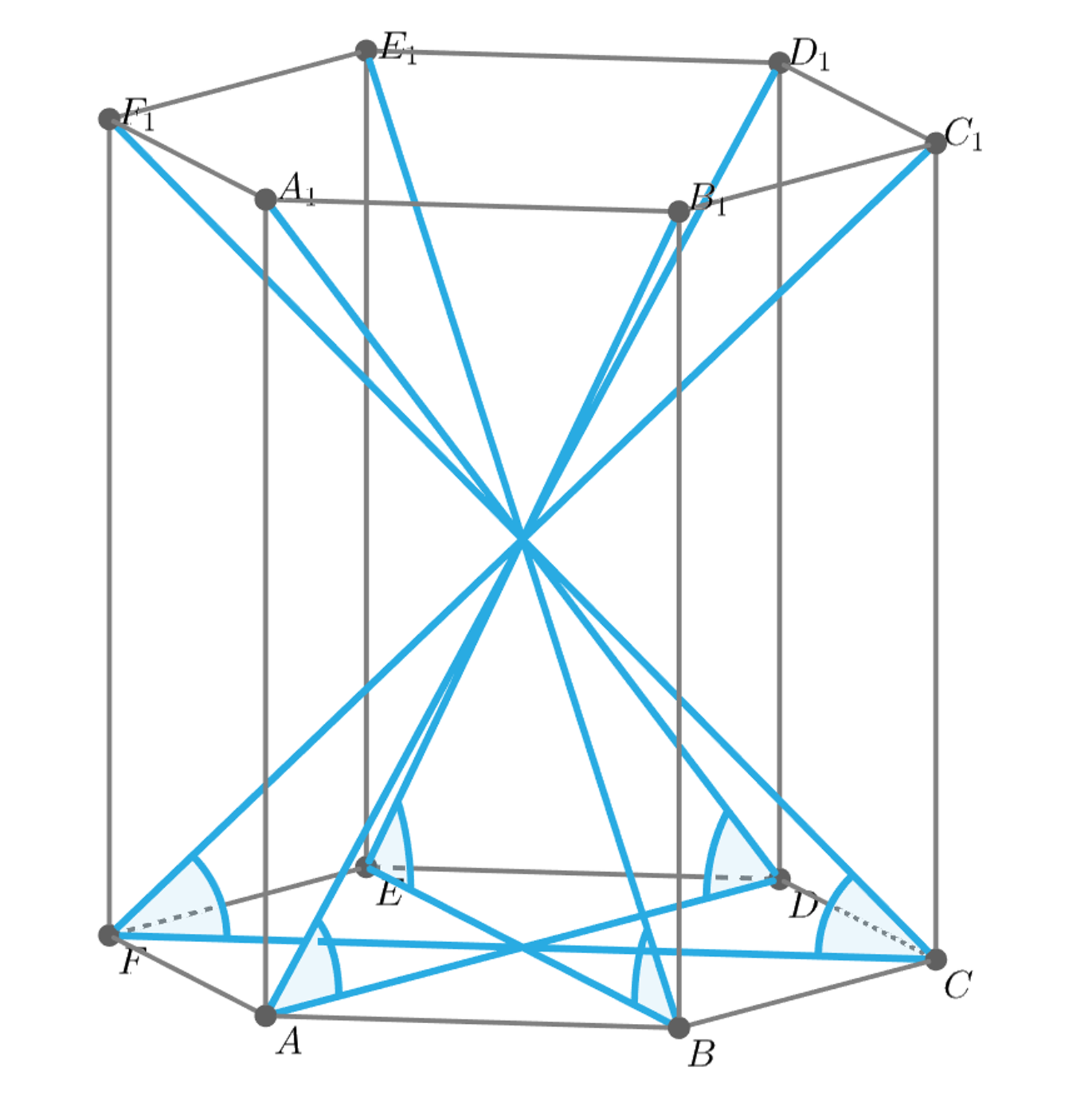 Uruchom aplet i obserwuj kąty w graniastosłupie prawidłowym sześciokątnym, następnie wykonaj polecenia poniżej.