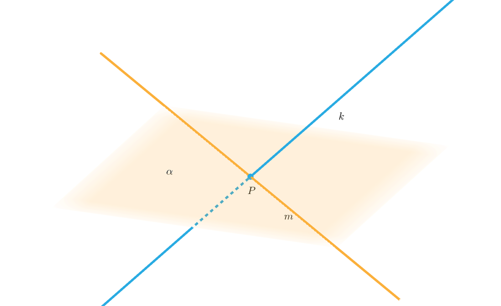 Dana jest płaszczyzna oraz prosta przecinająca tę płaszczyznę pod pewnym kątem w punkcie . Rzutem prostej na płaszczyznę jest prosta . W prostej zawarty jest odcinek , którego środkiem jest punkt . Jaką miarę ma kąt pomiędzy symetralną odcinka zawartą w płaszczyźnie a prostą . Odpowiedź uzasadnij.
