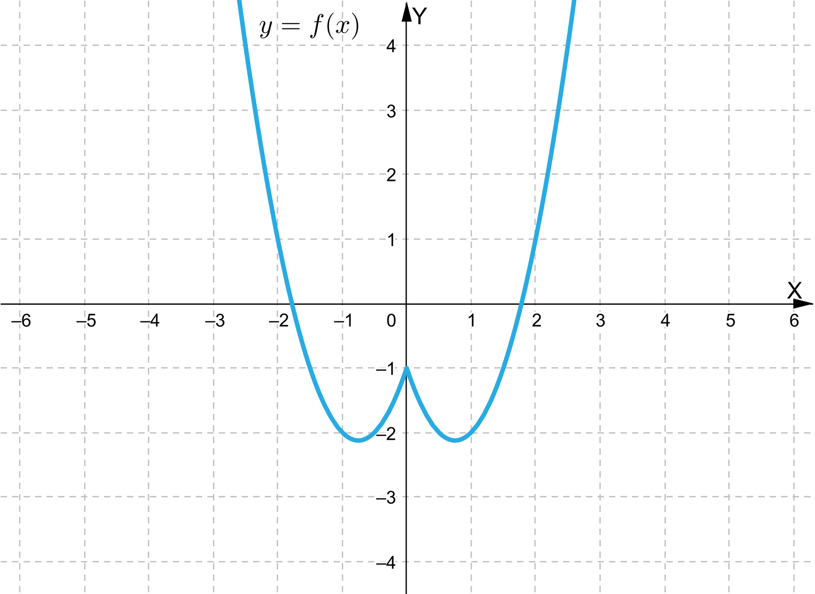 Na aplecie przedstawiono układ współrzędnych z poziomą osią od minus trzech do siedmiu, oraz z pionową osią od minus jeden do ośmiu. Na płaszczyźnie narysowano wykres funkcji opisanej wzorem . Wartości parametrów a, b i c można zmieniać za pomocą suwaka znajdującego się poniżej. Na podstawie zadanych wartości parametrów wyrysowany zostaje wykres funkcji. Przykład 1. Gdy , oraz wykres biegnie w następujący sposób. Od minus nieskończoności, przez punkt , przebija nad oś do punktu , gdzie ponownie odbija w dół i biegnie do punktu . W punkcie odbija w górę, przebija nad oś do punktu , gdzie ponownie odbija w dół i przez punkt biegnie do plus nieskończoności. Miejscami zerowymi są punkty , , oraz . Przykład 2. Gdy , oraz wykres funkcji składa się z dwóch półprostych. Pierwsza półprosta biegnie od minus nieskończoności, przez punkt do punktu , gdzie odbija w górę i biegnie do plus nieskończoności przez punkt . Przykład 3. Gdy , oraz wykres funkcji stanowi hiperbola. Wierzchołkiem wykresu funkcji jest punkt o współrzędnych , natomiast miejscami zerowymi są punkty oraz .