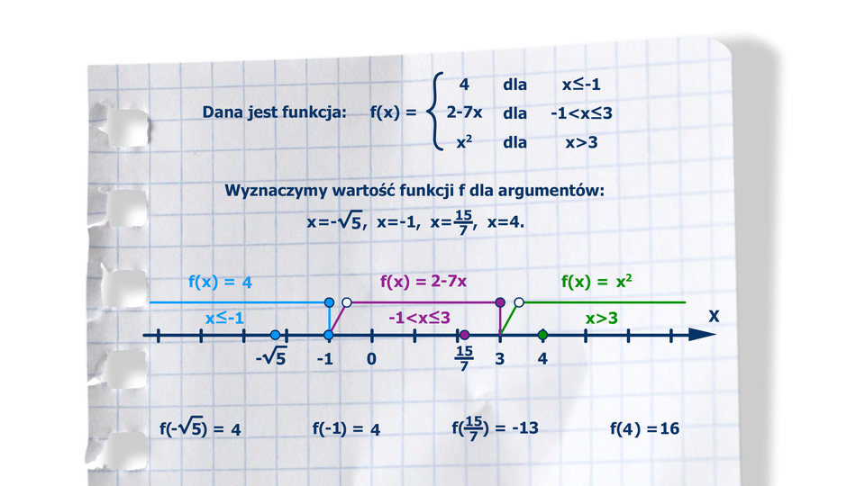 Animacja pokazuje jak obliczyć wartości funkcji f(x) dla podanych argumentów.