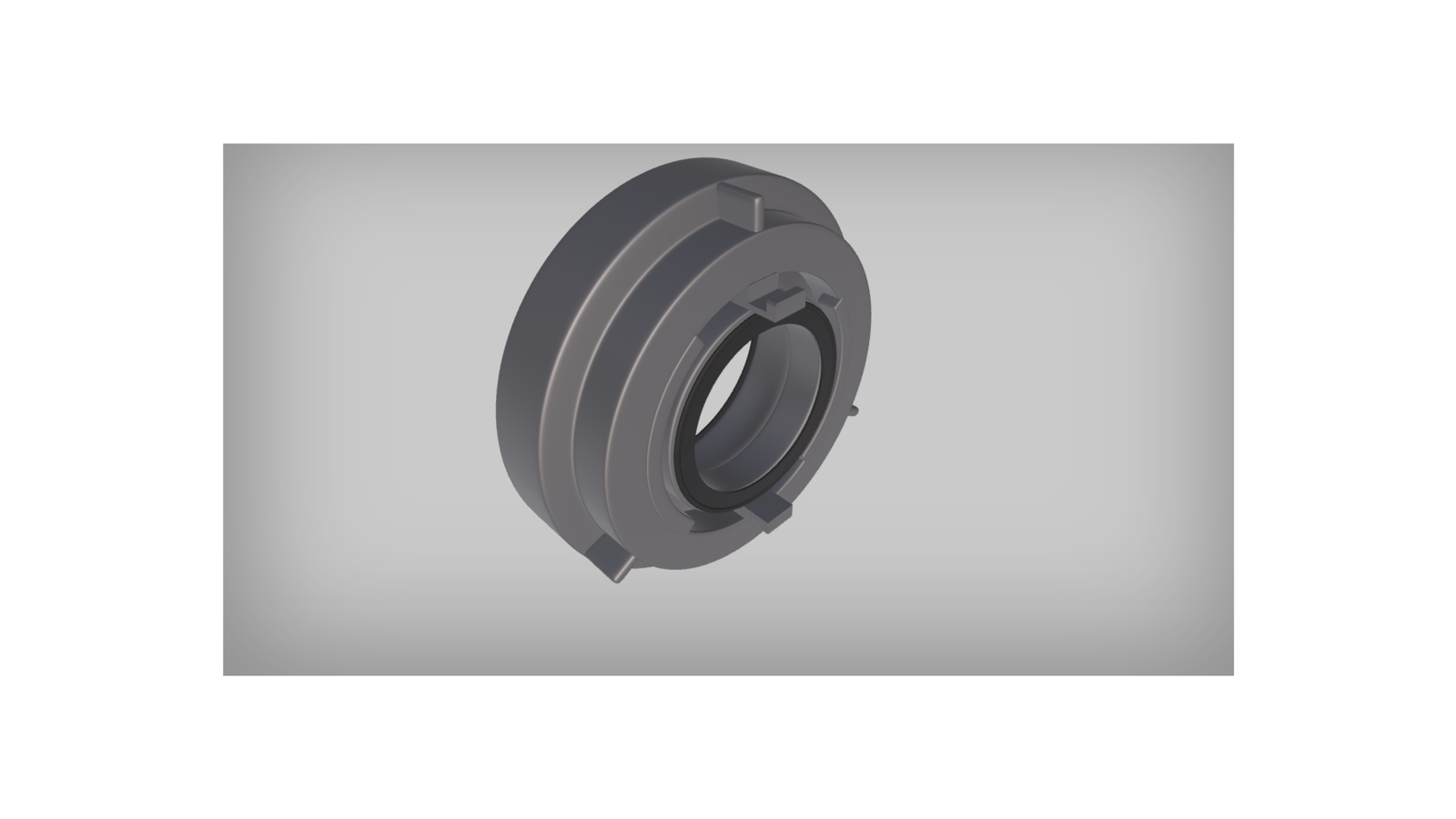 Wizualizacja przedstawia przełącznik. Ma okrągłą formę. Z jednej strony średnica przełącznika jest większa, a z drugiej mniejsza. Wewnątrz znajduje się uszczelka.