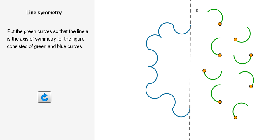 Rysunek linii a. Po lewej stronie jest figura złożona z 8 krzywych, po prawej stronie figura złożona z 8 krzywych będąca odbiciem lustrzanym figury z prawej strony. Krzywe mają kształt półokręgu.