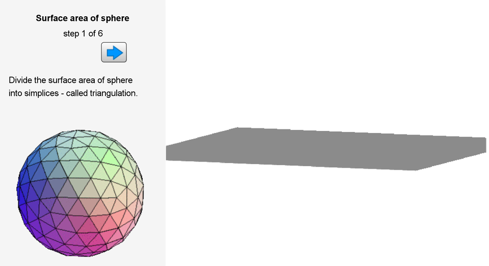 Your task is to observe how to calculate the surface area of the ballballball by triangulating the spherespheresphere.