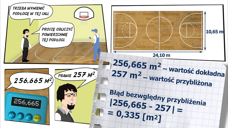 Animacja pokazuje, w jaki sposób obliczamy błąd bezwzględny przybliżenia.