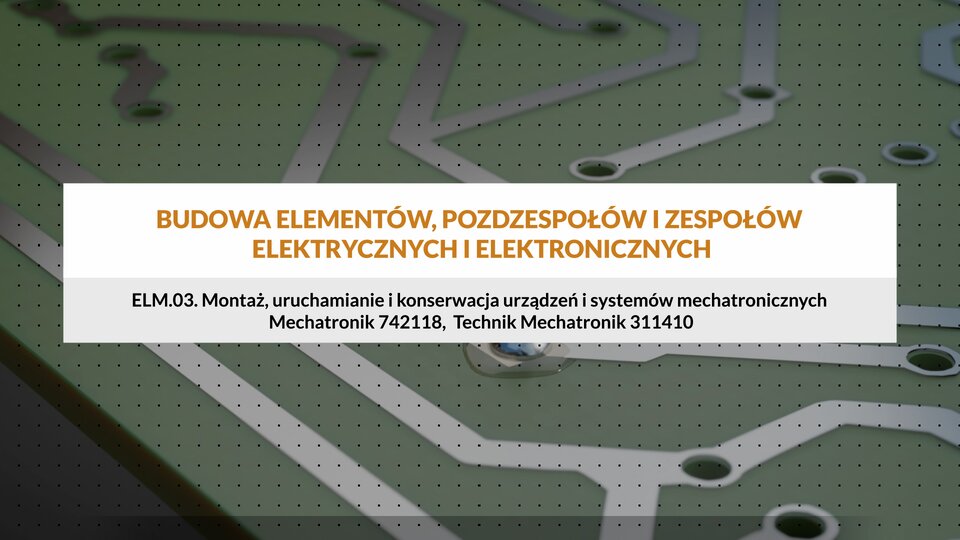 ELM.03. Montaż, uruchamianie i konserwacja urządzeń i systemów mechatronicznych – Mechatronik 742118 oraz Technik mechatronik 311410