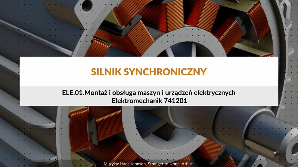 Animacja pt. Silnik synchroniczny dla klasyfikacji ELE kropka zero jeden Montaż i obsługa maszyn i urządzeń elektrycznych, zawód Elektromechanik kod zawodu siedem cztery jeden dwa zero jeden