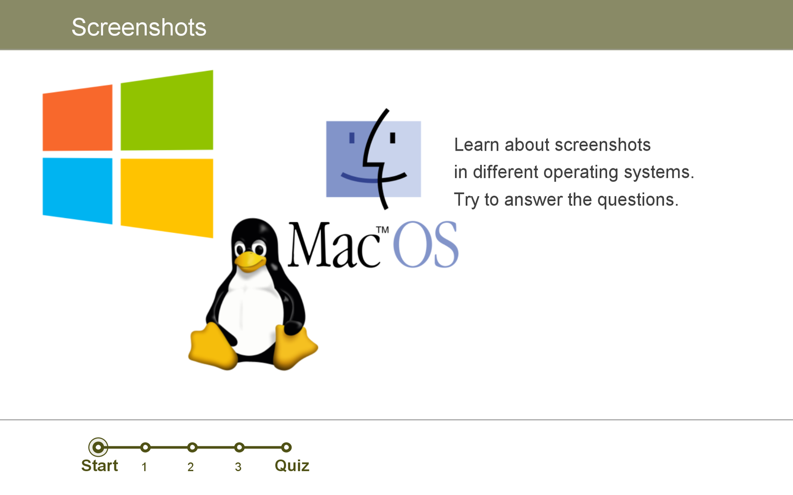 Open the aplet „Screenshots”, watch it and then do the quiz.