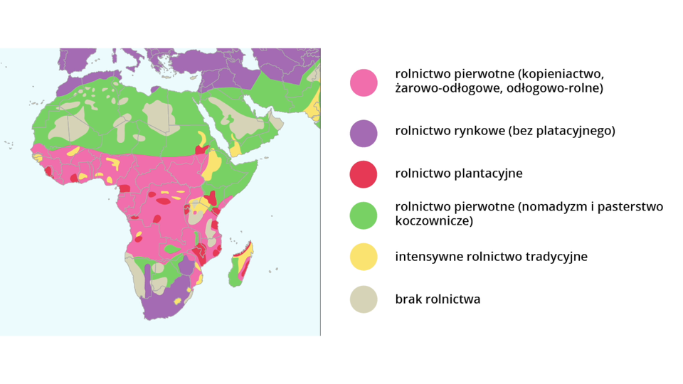 Na podstawie prezentacji zaznacz na mapie kolorem czerwonym rolnictwo plantacyjne, a fioletowym rolnictwo żarowo‑odłogowe.