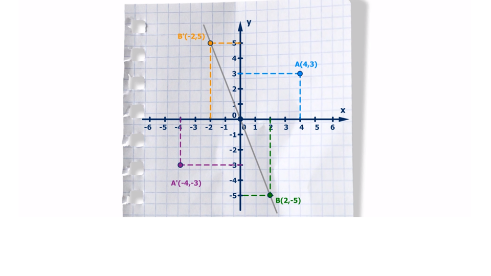 The image of pointpointpoint A (x ,y) point in the central symmetrycentral symmetrycentral symmetry with respect to the origin of the coordinate system O (0, 0) is point AIndeks dolny 11(-x , -y).