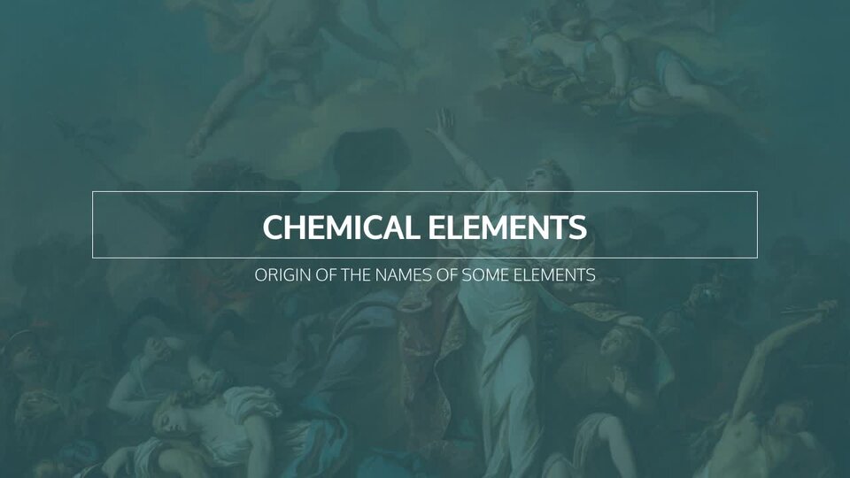 Nagranie filmowe wyjaśniające pochodzenie nazw niektórych pierwiastków. Niektóre nazwy pierwiastków pochodzą od ich właściwości. Na przykład nazwa chlor, chlorine po łacinie chloros pochodzi od słowa zielony, green. Siarka, sulfur po łacinie sira, od jasno-żółty, light yellow. Jod, iodine po łacinie ioeides, od słowa fioletowy, violet. Brom, bromos po łacinie bromine od słowa fetor, stench. Niektóre nazwy pierwiastków mają swoją nazwę od nazw ciał niebieskich, planet i asteroidów. Na przykład, hel, helium po łacinie helios pochodzi od nazwy gwiazdy słońce, sun. Neptun, neptunium po łacinie neptun od planety Neptun, Neptune. Pluton, pluton po łacinie plutonium od nazwy planety Pluton, Pluto. Uran, uran po łacinie uranium od nazwy planety Uran, Uranus. Niektóre nazwy pierwiastków pochodzą od nazw mitologicznych postaci. Na przykład, nazwa niob, niob po łacinie niobium pochodzi od postaci Niobe z greckiej mitologii. Niobe była córką Tantala. Promet, prometium po łacinie promethium od Prometeusza. Tantal, tantalum po łacinie tantalum od Tantala.