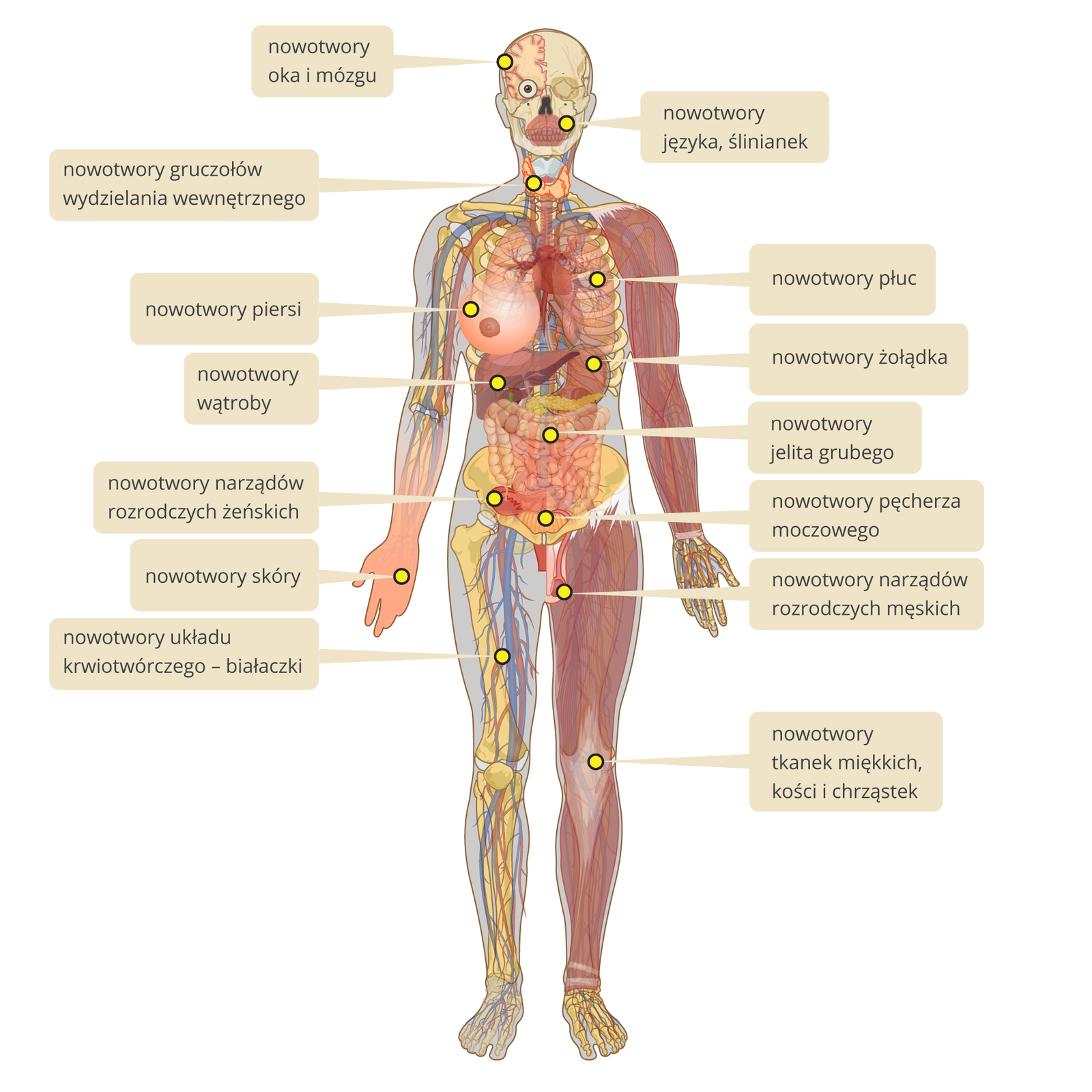 Nowotwory rozwijają się w różnych tkankach i narządach. Dzieli się je na nowotwory łagodne i złośliwe. Nie należy ich wszystkich nazywać rakiem, ponieważ słowo „rak” z definicji oznacza nowotwór złośliwy wywodzący się z komórek nabłonka. Tak więc każdy rak jest nowotworem, ale nie każdy nowotwór to rak!