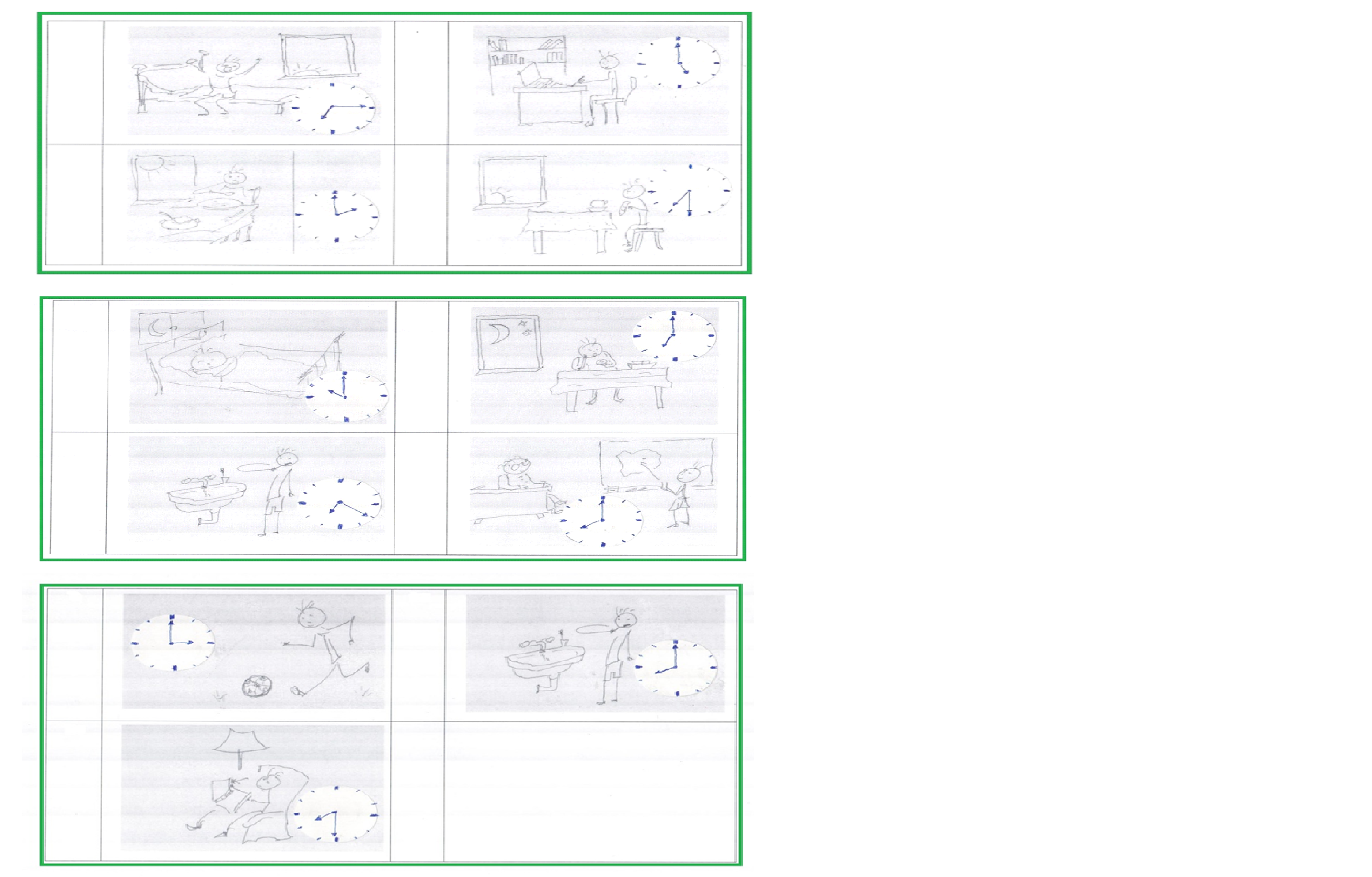 Uporządkuj rozkład dnia Jacka – obok obrazków wpisz litery od a do k. Pierwszy obrazek jest już na właściwym miejscu