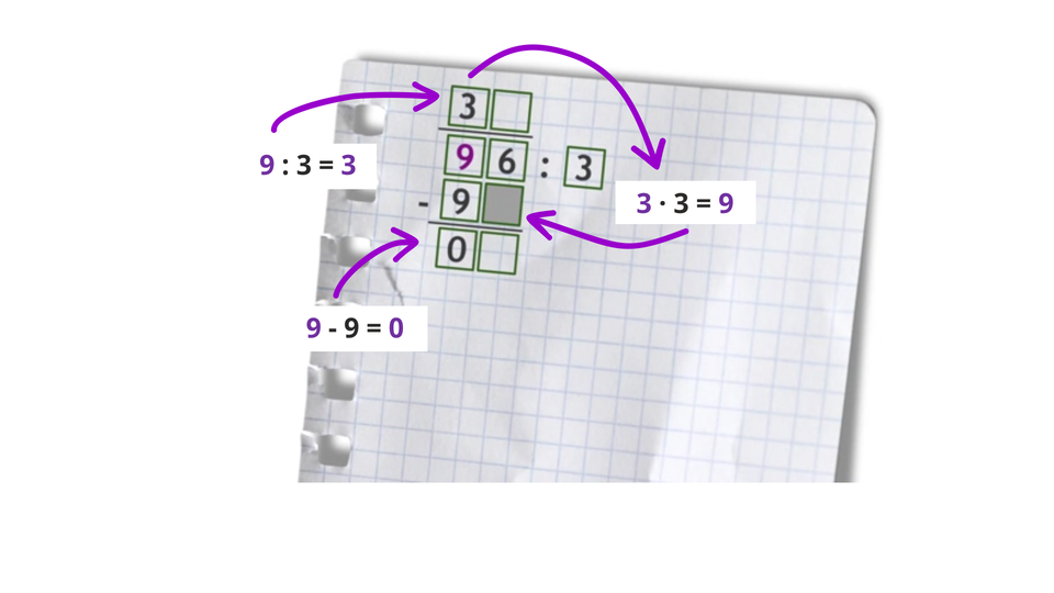 dzielenie pisemne przez liczby jednocyfrowe - column division of natural numbers by one-digit numbers
