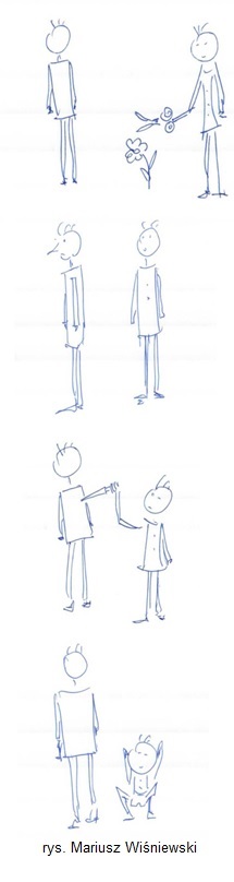 Bez mojej wiedzy Paweł zdradził nasz wspólny pomysł na projekt. Inni go wykorzystali, zbierając pochwały, a my w konkursie znaleźliśmy się na ostatnim miejscu. Potem nie miał odwagi przyznać się, zrzucając winę na Piotrka. Sprawił mi ogromną przykrość – tak cieszyłem się, że jesteśmy niepokonani. Któregoś dnia pod‑szedł do mnie, chcąc się wytłumaczyć, ale ja już nie chcę mieć z nim nic wspólnego.
