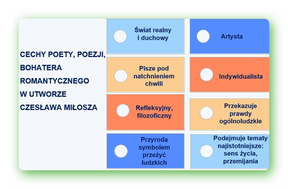 Uczniowie podsumowują, wymieniając cechy poety, poezji, bohatera romantycznego widoczne w utworze Czesława Miłosza?