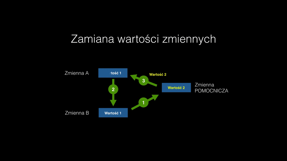 Utwórz trzy pomocnicze zmienne, w których zapamiętasz poszukiwane liczby.