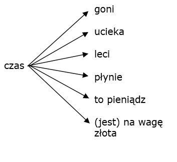 Dlaczego szybko? – bo czas uciekaIndeks górny 11, czas goni, czas szybko płynie, czas to pieniądz, czas (jest) na wagę złota (zapis).