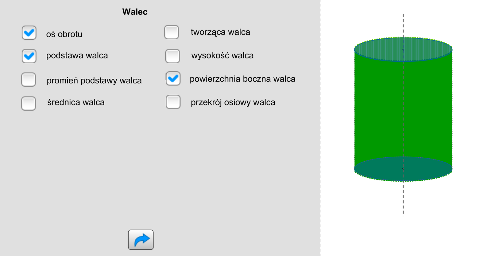 Walec to bryła, która powstała w wyniku obrotu prostokąta dookoła prostej zawierającej jeden z boków tego prostokąta.