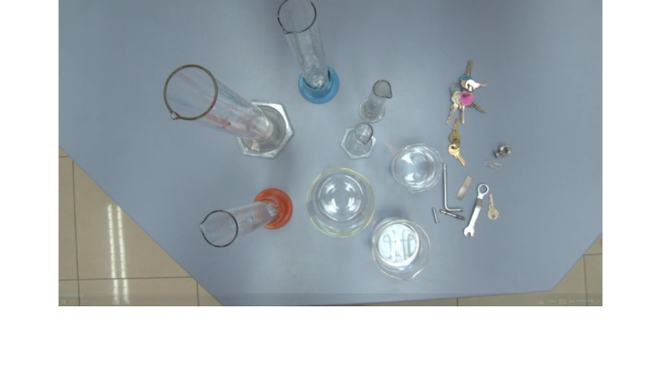 In the presented example the measurement accuracymeasurement accuracymeasurement accuracy of the measuring‑glass is 1 ml = 1 cmIndeks górny 33. This is the accuracy of determining the entire volume of water in the glass. However, our measurement is relative. We do not measure the volume of water but the difference between water volume with the key and after removing the key. Therefore, the measurement error is related only to the method of reading the water level and the meniscus height. Thus, the error of such measurement can be estimated as 0,2 ml = 0,2 cmIndeks górny 33.