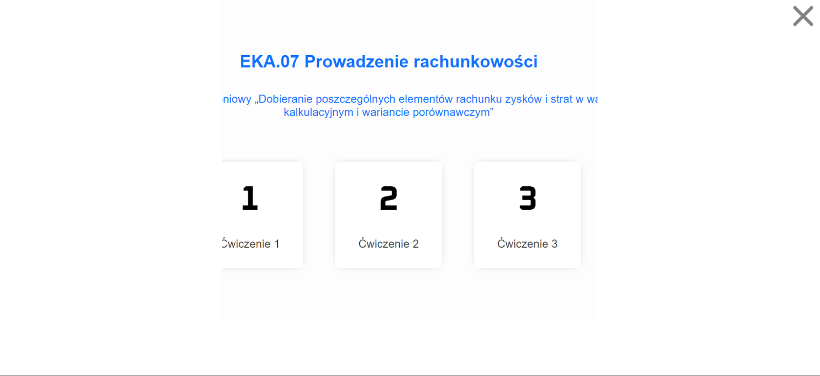 Aby przejść do danego zadania należy kliknąć kwadrat z numerem ćwiczenia. Po kliknęciu otworzy się ekran z kafelkami do wyboru, w zależności od zadania.