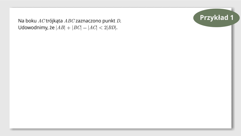 Lektor mówi: Przykład pierwszy. Udowodnimy teraz ciekawą własność trójkąta, która wynika bezpośrednio z warunku wiążącego długości boków trójkąta.