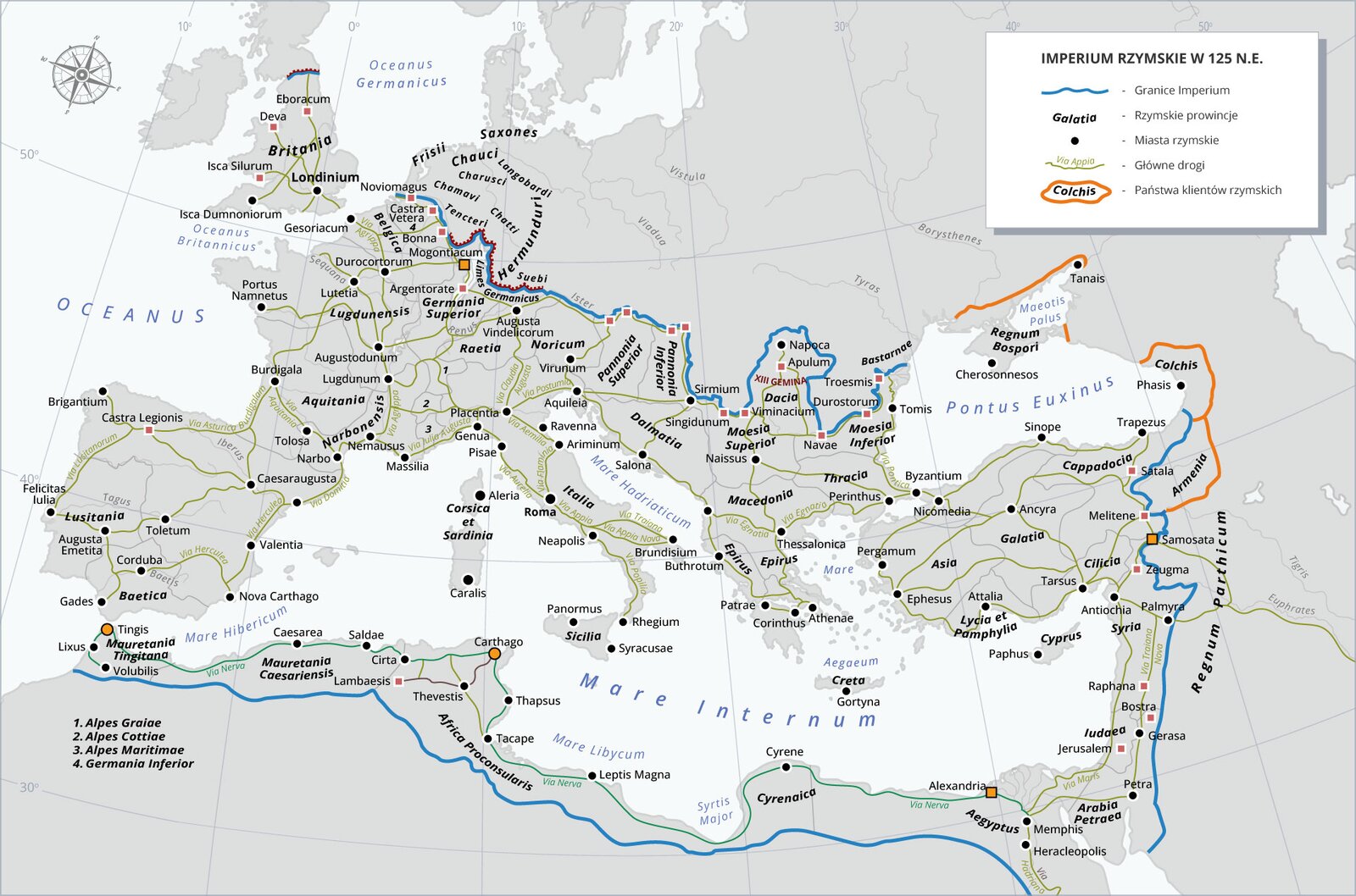 Rozmieszczenie dróg na mapie Cesarstwa Rzymskiego oraz ich krótką charakterystykę znajdziesz na mapie interaktywnej „Główne drogi Cesarstwa Rzymskiego.