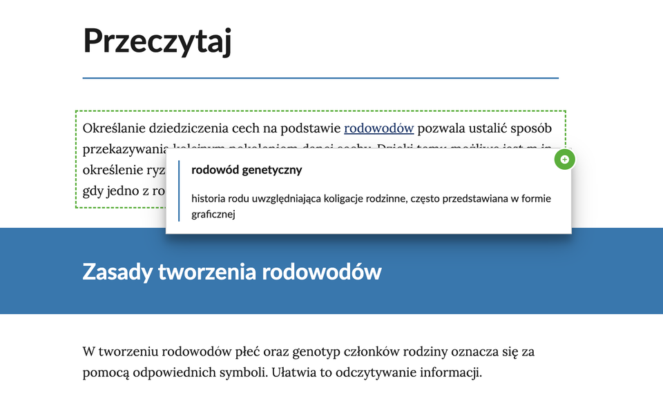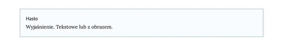Dymek służy do wyjaśniania pojęć. Umożliwia wyświetlenie krótkiego opisu lub definicji w formie chmurki wyświetlanej po naprowadzeniu kursora na zaznaczone na niebiesko wyrażenie.