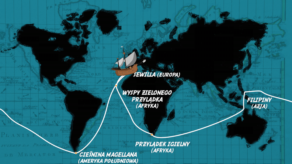 Animacja przedstawia kolejne etapy podróży dookoła świata Ferdynanda Magellana.