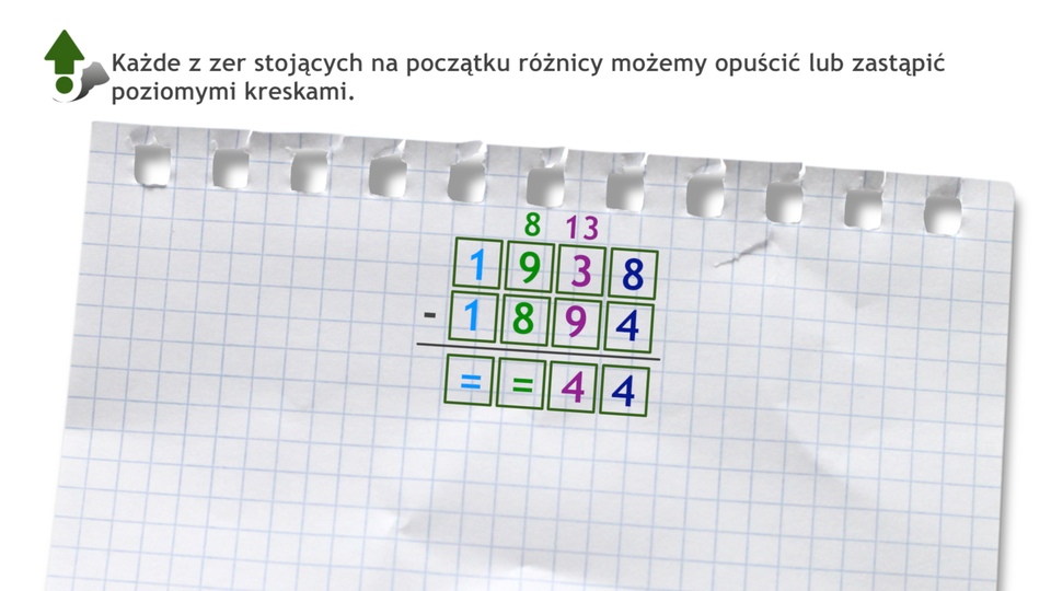 Animacja przedstawia w jaki sposób możemy odejmować liczby naturalne sposobem pisemnym.